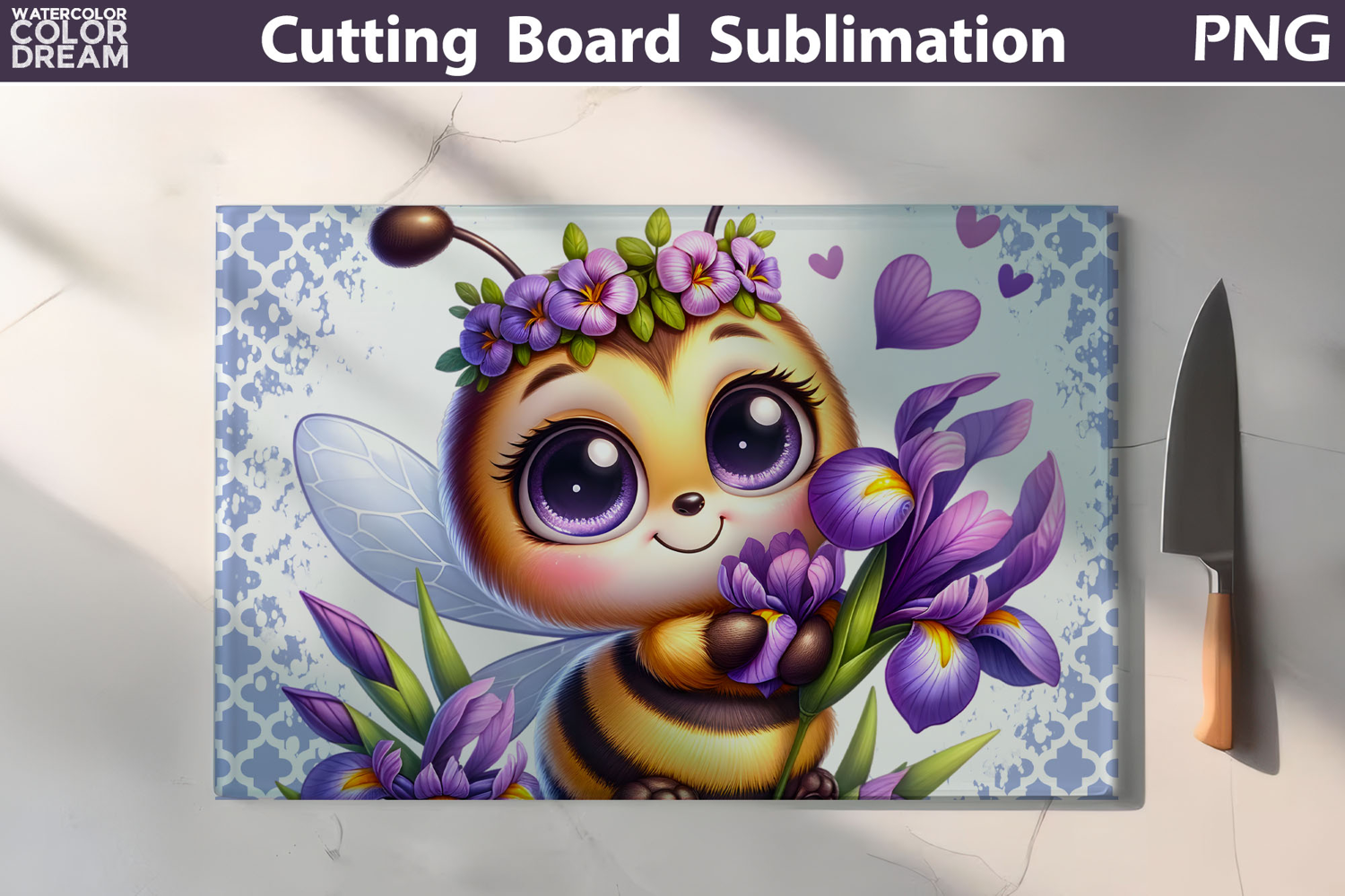 Purple Iris Bee Sublimation | Glass Cutting Board Design example image 1