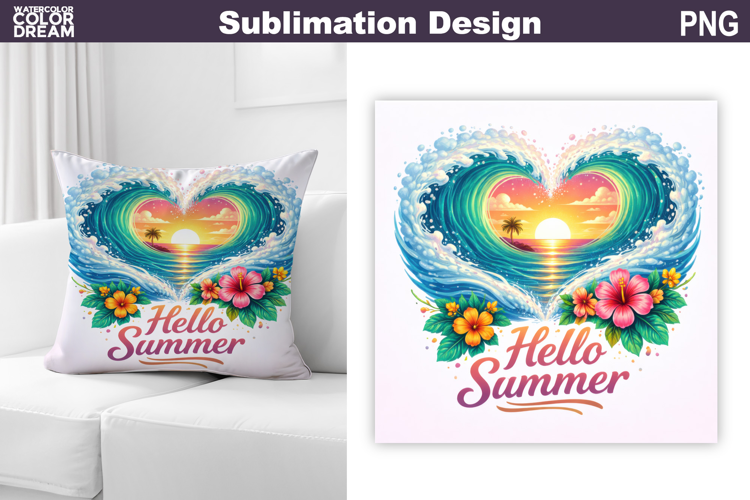 Similar Design Products to Ocean Heart Sunset Sublimation | Summer Beach Pillow