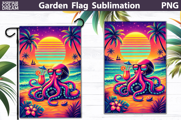 Octopus Garden Flag | Tropical Cocktail Sunset Beach example image 1
