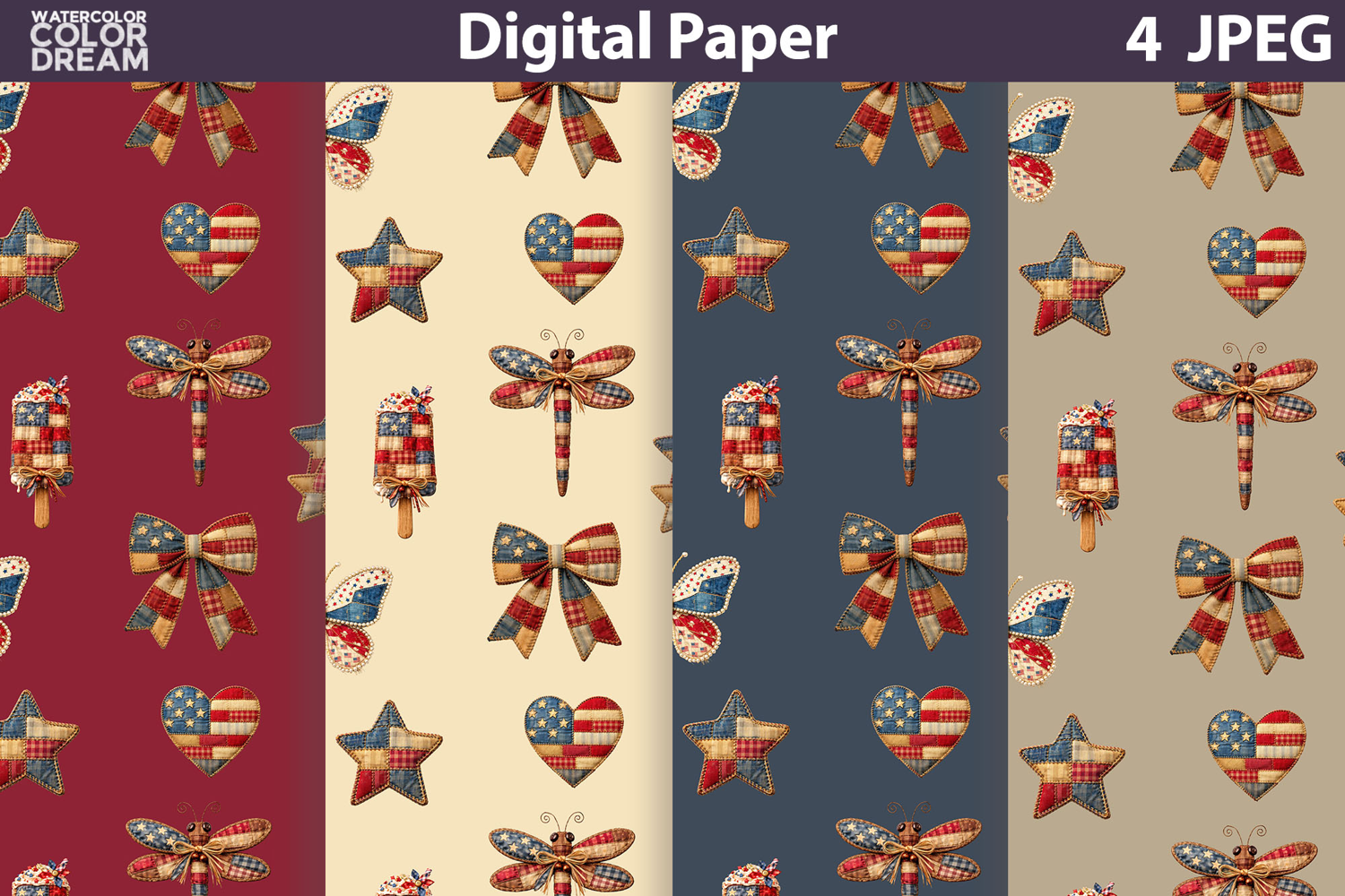 Digital Paper Background Patriotic Seamless Pattern Patriotic Patchwork Patterns Usa Seamless Digital Paper Patriotic Stars Hearts Bows Pattern 4th Of July Digital Peper Pattern Patriotic Rustic Fabric Pattern Digital Paper Vintage Americana Background Americana Fabric Texture Digital Paper