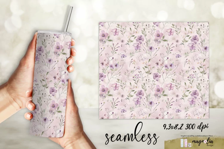Tumbler Wrap Skinny Tumbler Design Tumbler Sublimation 20 Oz Tumbler Floral Tumbler Wrap Watercolor Floral Tumbler Tumbler For Her Mother's Day Tumbler Sublimation Flower Tumbler Warp Violet Watercolor Flowers