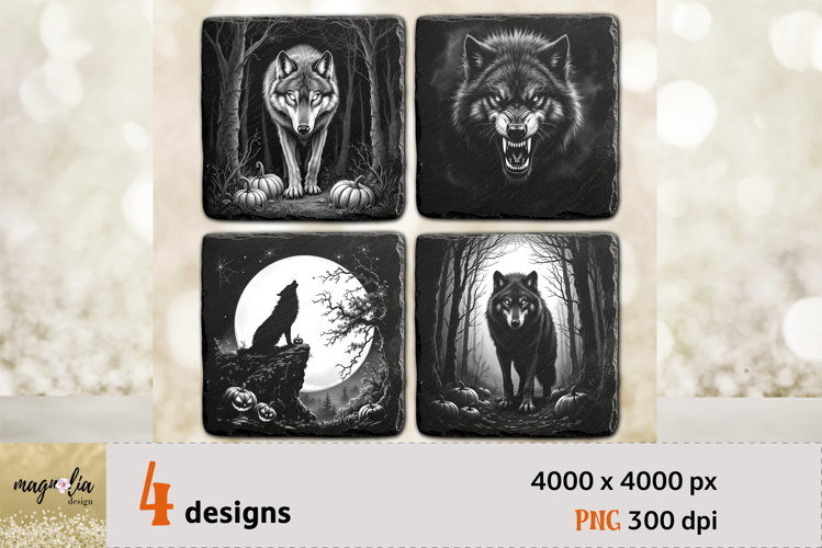 Gothic Halloween Glowforge Files Engraving Files Halloween Coaster Scary Halloween Png Xtool Files Laser Engraving Png Slate Coaster Design Slate Engraving Wolf Halloween Coaster