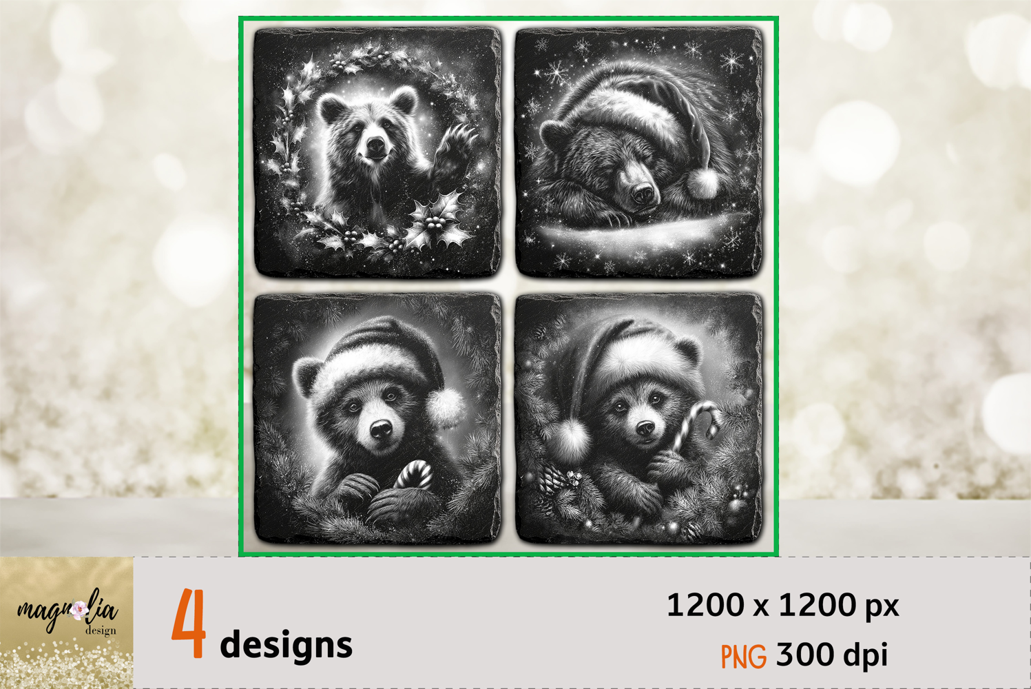 CHRISTMAS BEAR slate coaster engraving png