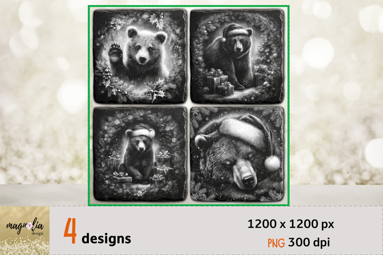 CHRISTMAS BEAR slate coaster engraving png