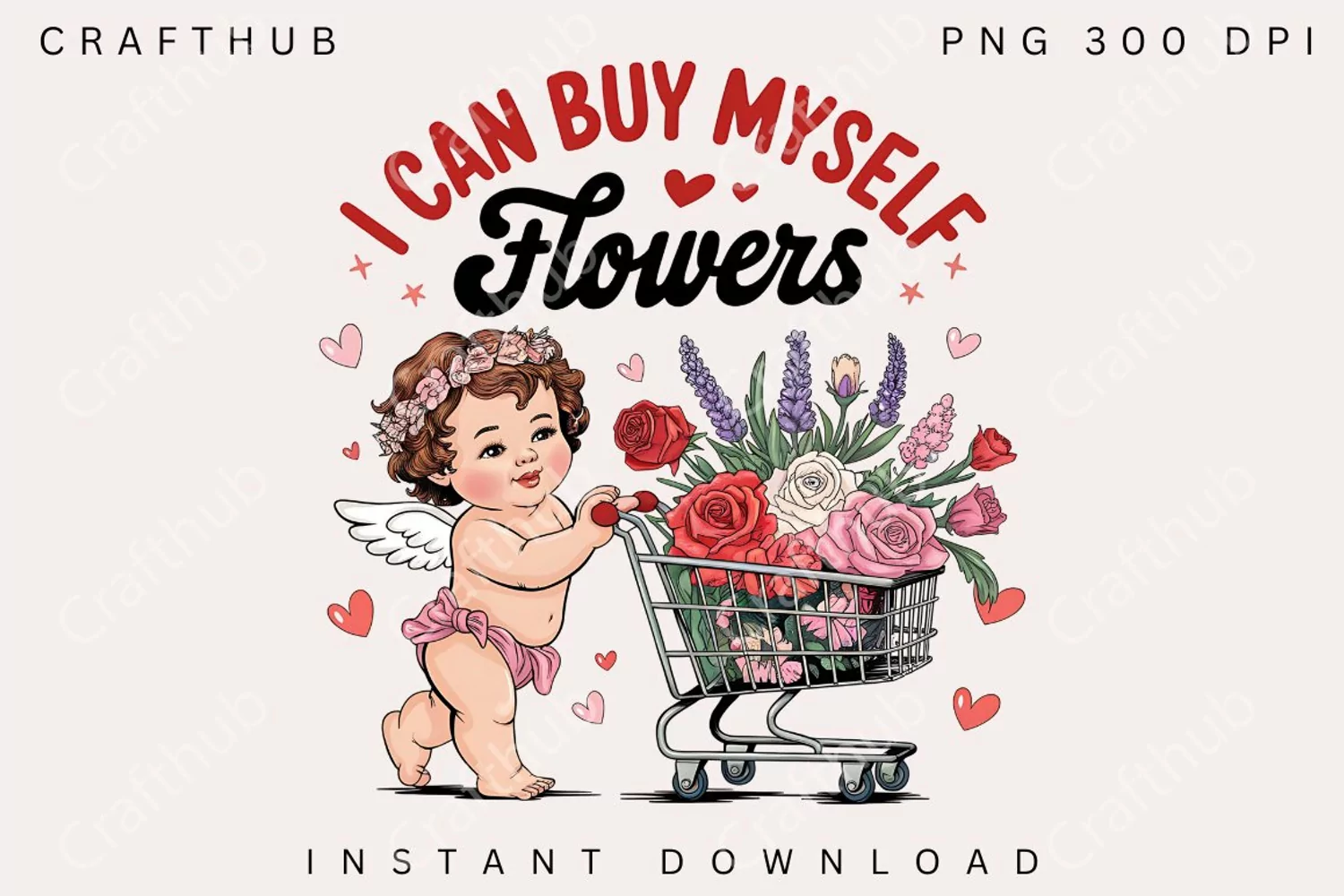 I Can Buy My Self Flowers PNG, Funny Valentine Shirt Design, Vintage Retro Funny Cupid PNG, Anti Valentine Day,Humorous sarcastic valentines png, Vintage Retro Funny Cupid png, Anti Valentine png, Funny valentine,
