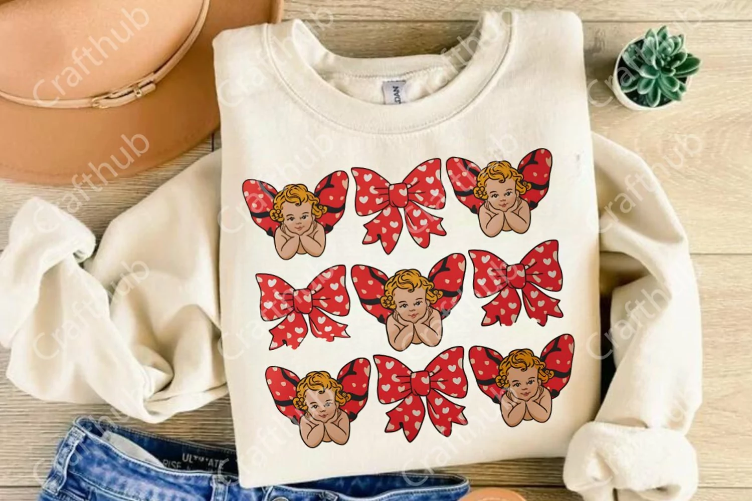 Cupid Coquette bow Png, Retro Valentine Shirt Design, Baby Cupid png, Valentine's Day Png, Valentine Love Png, valentine's day bow png