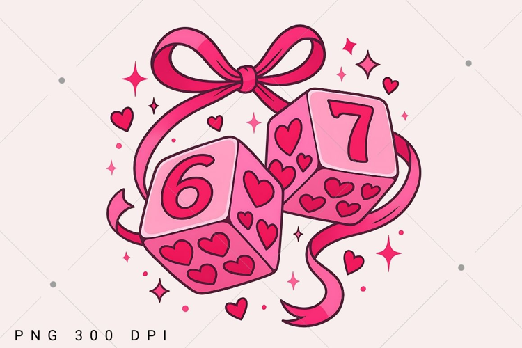 Preppy Six Seven Valentine PNG, Dice 6 7 Clipart, Funny Coquette Valentine Shirt Design, Playing Cards Valentine PNG