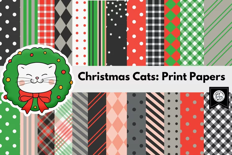 Christmas Cats Print Papers for Cricut, Digital Scrapbooking