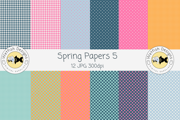 Bright, bold, and full of personality—Spring Papers 5 by Wetfish Designs brings a fun, modern twist to your creative projects! This collection features 12 seamless patterned papers in a lively palette of teal, coral pink, navy, and vibrant orange.