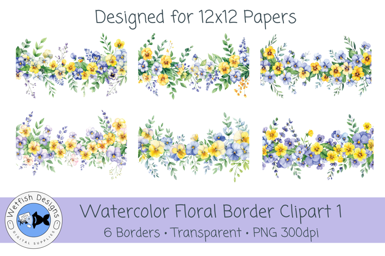 Add a soft, decorative touch to your designs with this beautiful Watercolor Floral Border Clipart Set. This collection features six hand-painted floral borders designed specifically for 12x12 layouts, making them perfect for scrapbooking, printable papers, and creative projects.