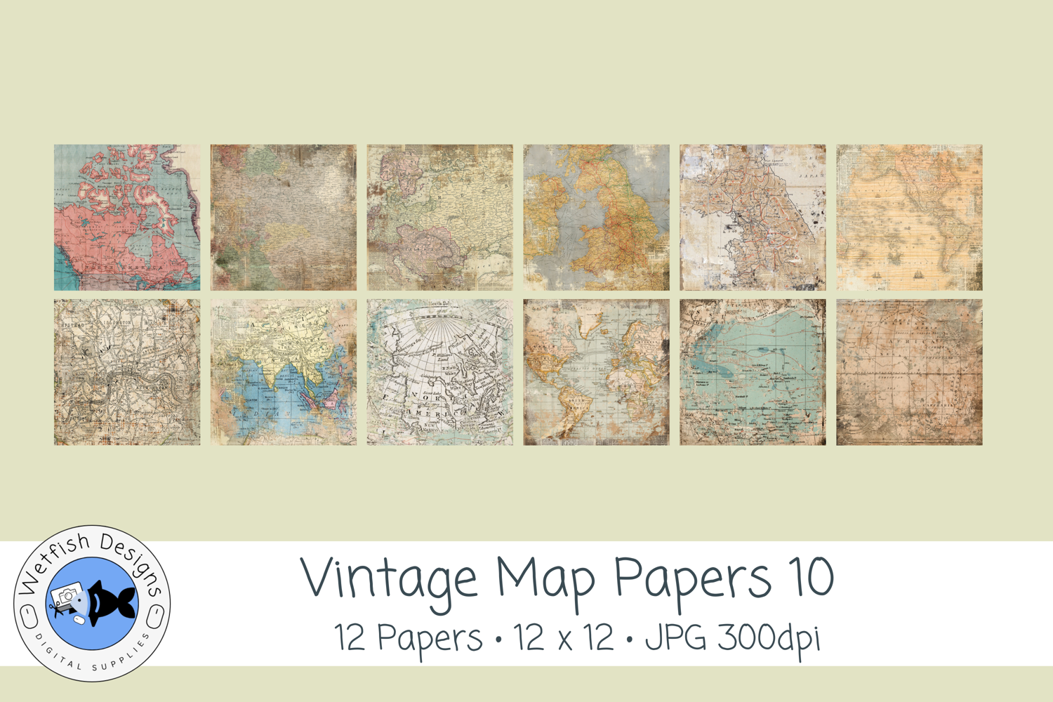 Bring the beauty of historic cartography to your creative projects with Vintage Map Papers 10 from Wetfish Designs. This collection features richly textured antique-style maps with softly aged paper tones, intricate geographic details, and classic atlas illustrations that evoke a sense of exploration and history.