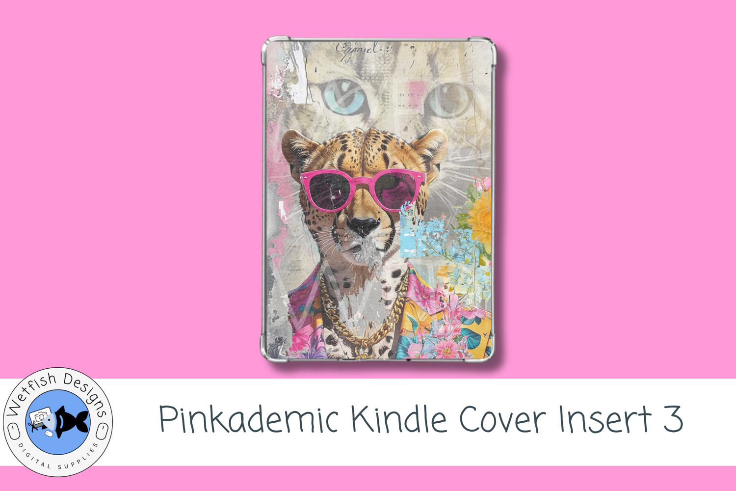 Add a fun and stylish touch to your Kindle with this Pinkademic cover insert! Featuring a fashionable cheetah in pink sunglasses with collage textures and floral accents, this design is perfect for readers who love bold, playful, and trendy aesthetics.