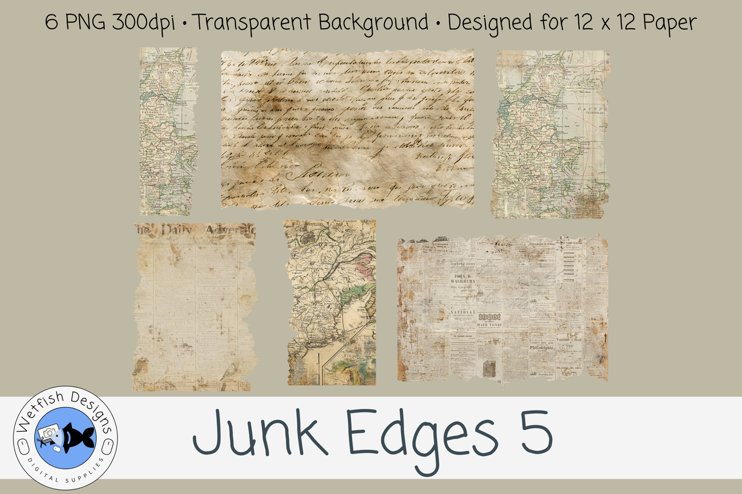 Create beautifully layered vintage projects with Junk Edges 5, a set of 6 distressed ephemera-style PNG paper fragments designed for junk journals, scrapbooking, collage, and printable crafts.