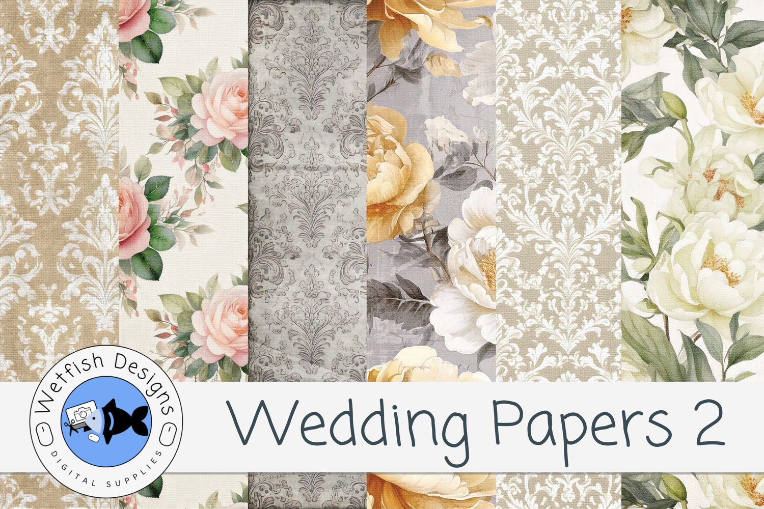 This set is ideal for designers, crafters, and makers looking for elegant wedding-themed backgrounds with a soft vintage floral aesthetic.