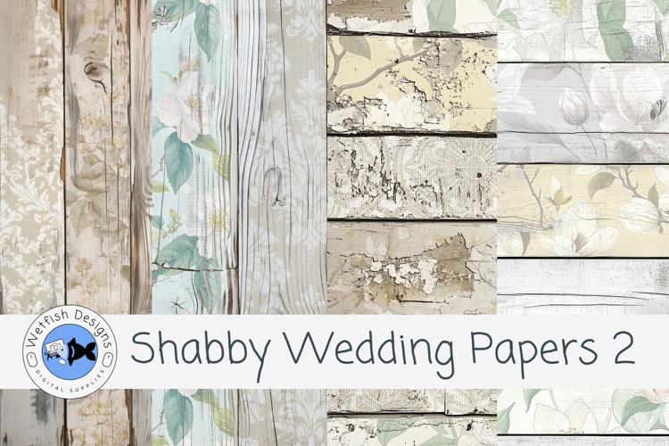 Shabby Wedding Papers 2 is a beautifully soft collection of romantic digital backgrounds featuring distressed wood, faded florals, delicate botanical details, and vintage-inspired textures. With a light, airy palette and weathered shabby chic styling, this set is perfect for elegant creative projects with a rustic romantic touch.