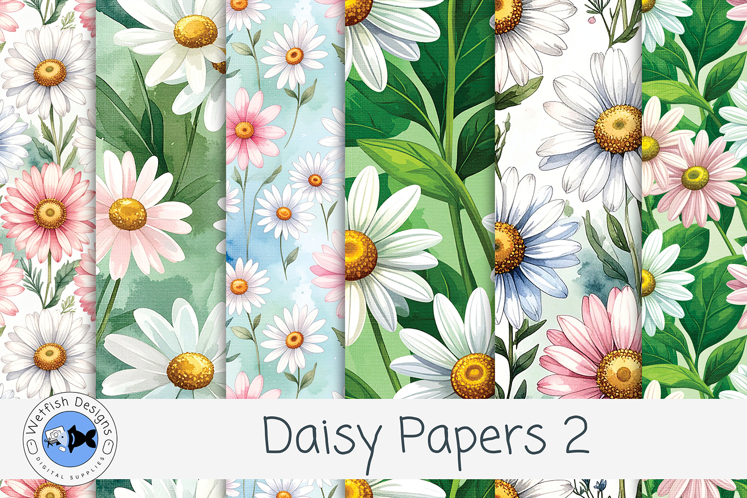Add a fresh floral touch to your designs with this set of 6 daisy-themed digital papers. Featuring soft watercolor textures and charming botanical arrangements, these high-resolution backgrounds are perfect for a wide range of creative projects.