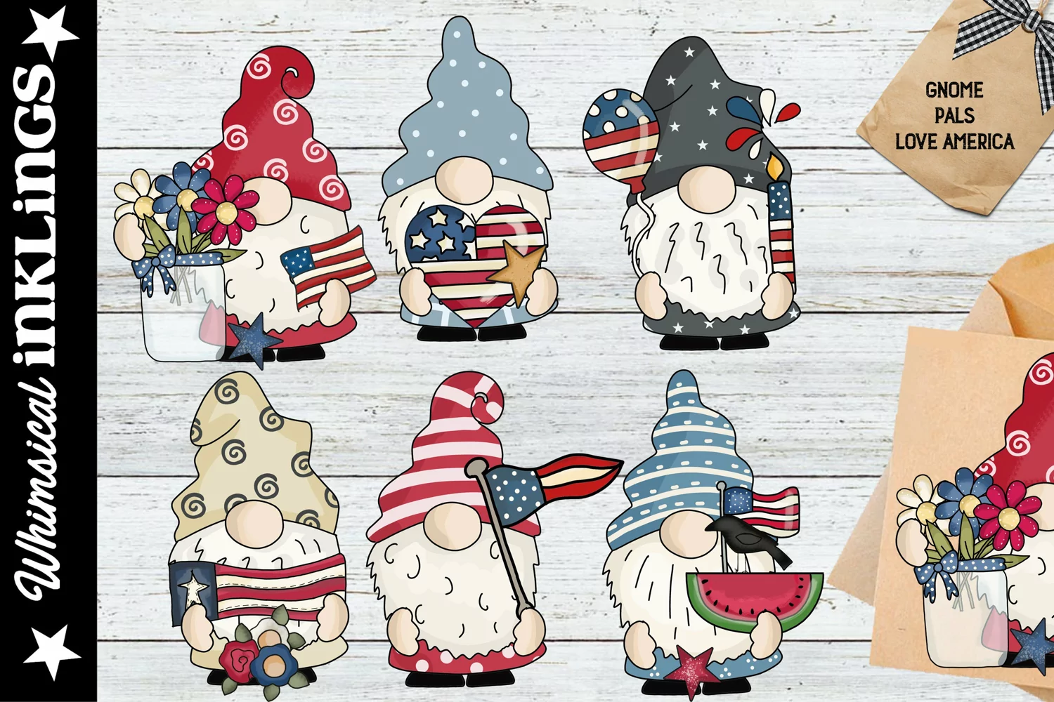 Gnome Pals Love America Sublimation Clipart