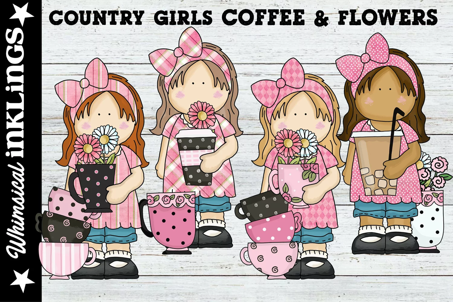 Get 4 large adorable coffee and flower girls in 300 DPI PNG format! Perfect for sublimation, cards, paper crafting and more!