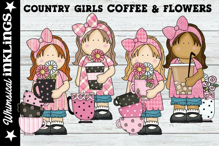 Country Girls Coffee and Flowers Sublimation Clipart