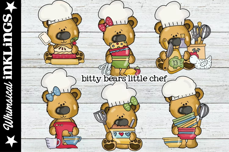 Bitty Bears Little Chef Sublimation Clipart example image 1