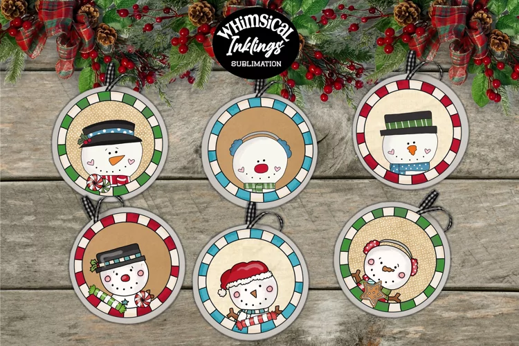 Snowman Ornament Snowman Design Christmas Sticker Snowman Sublimation Round Christmas Ornament Round Ornie Inter Sticker