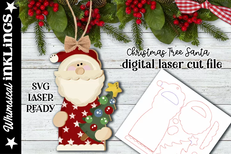 Get this whimsical Santa ornament as a laser ready SVG. Does NOT include painting or assembly instructions