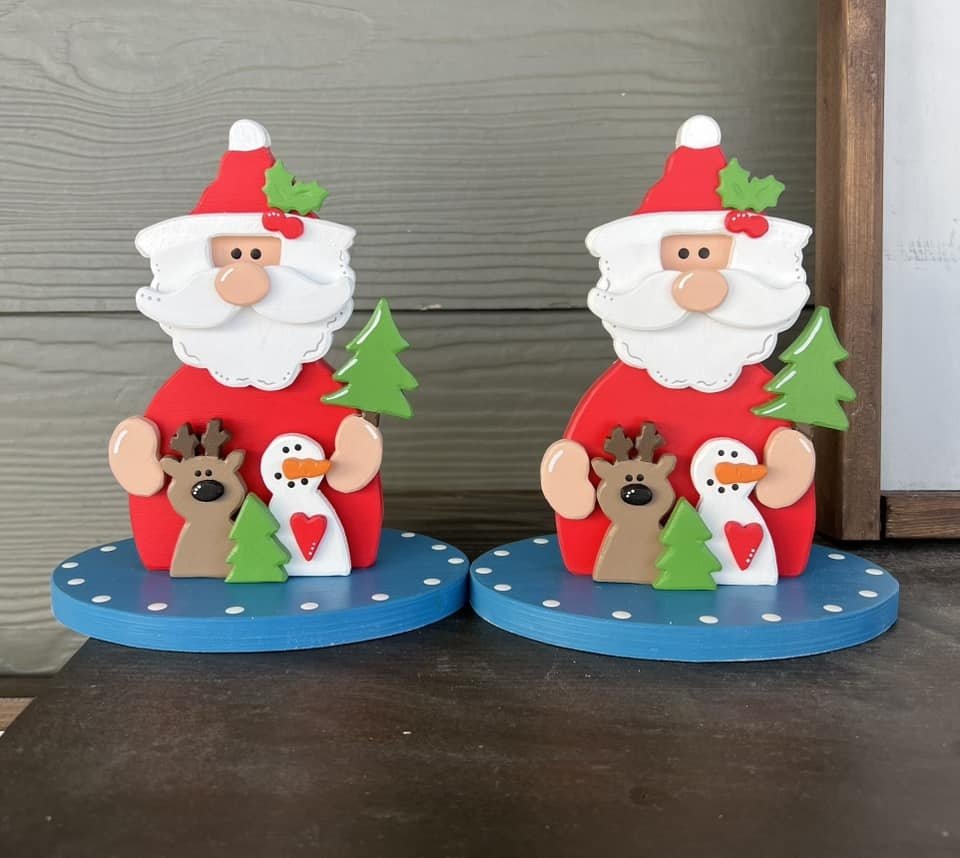 Get this cute Santa and his little buddies as a laser ready SVG. He stands about 7" tall. base may need to be adjusted depending on the wood you use. Glue is my best friend for minor base discrepancies! ;) No assembly or painting instructions are included, so use your imagination!