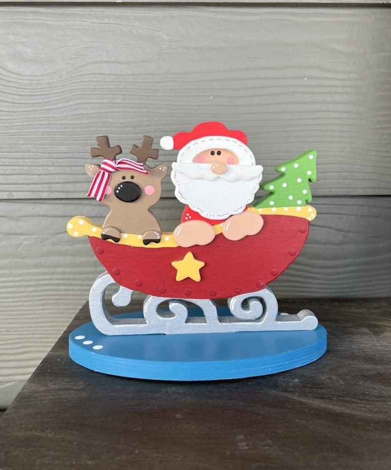 This cute Santa and reindeer in the sleigh come to you as a laser ready SVG. He stands about 6" tall. The base might need adjusted depending on the wood you use. Glue is my best friend for discrepancies in base size! ;) No painting or assembly instructions are included.