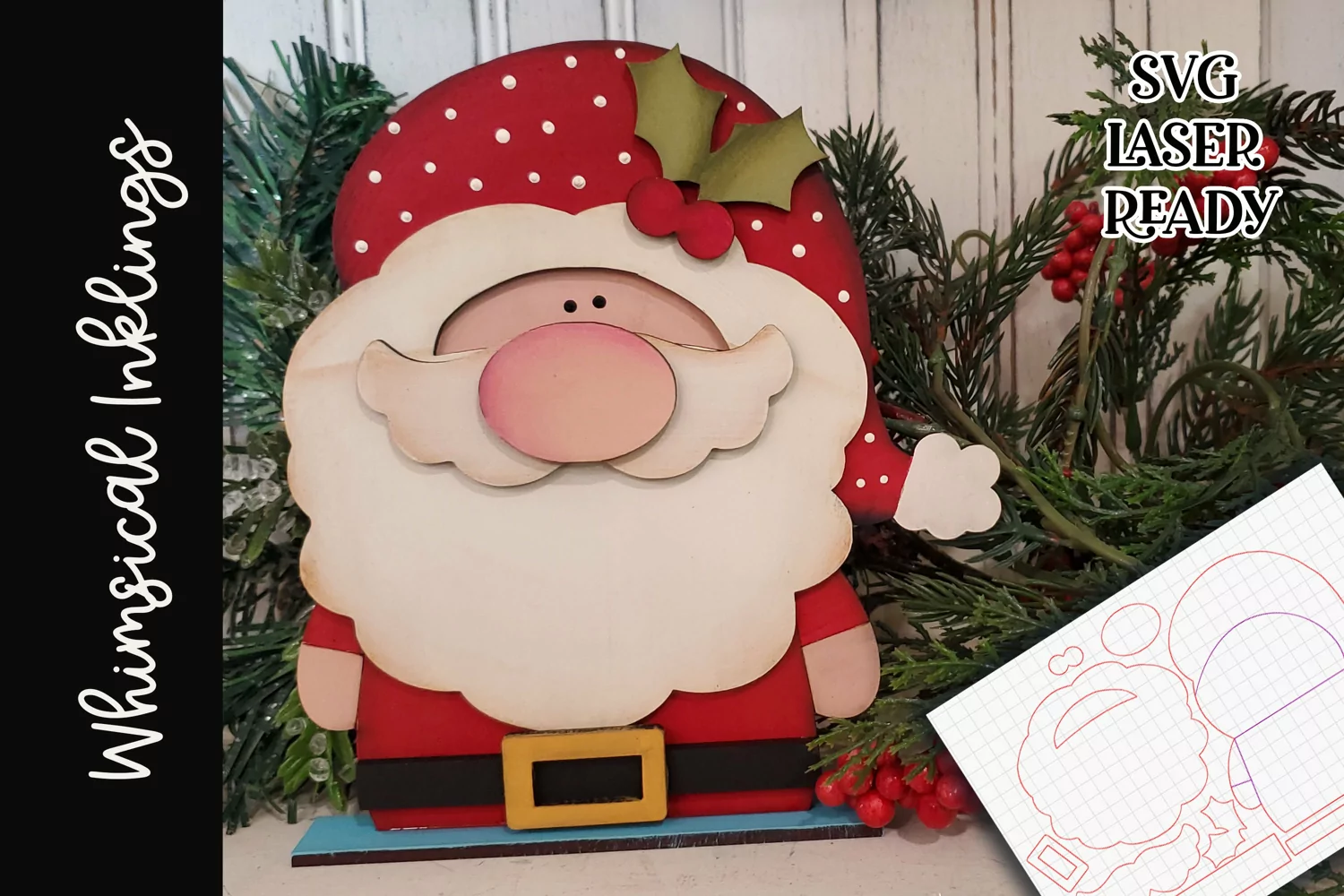Get this whimsical Santa as a laser ready SVG. No instructions are included. leave the base off and make him an ornament!