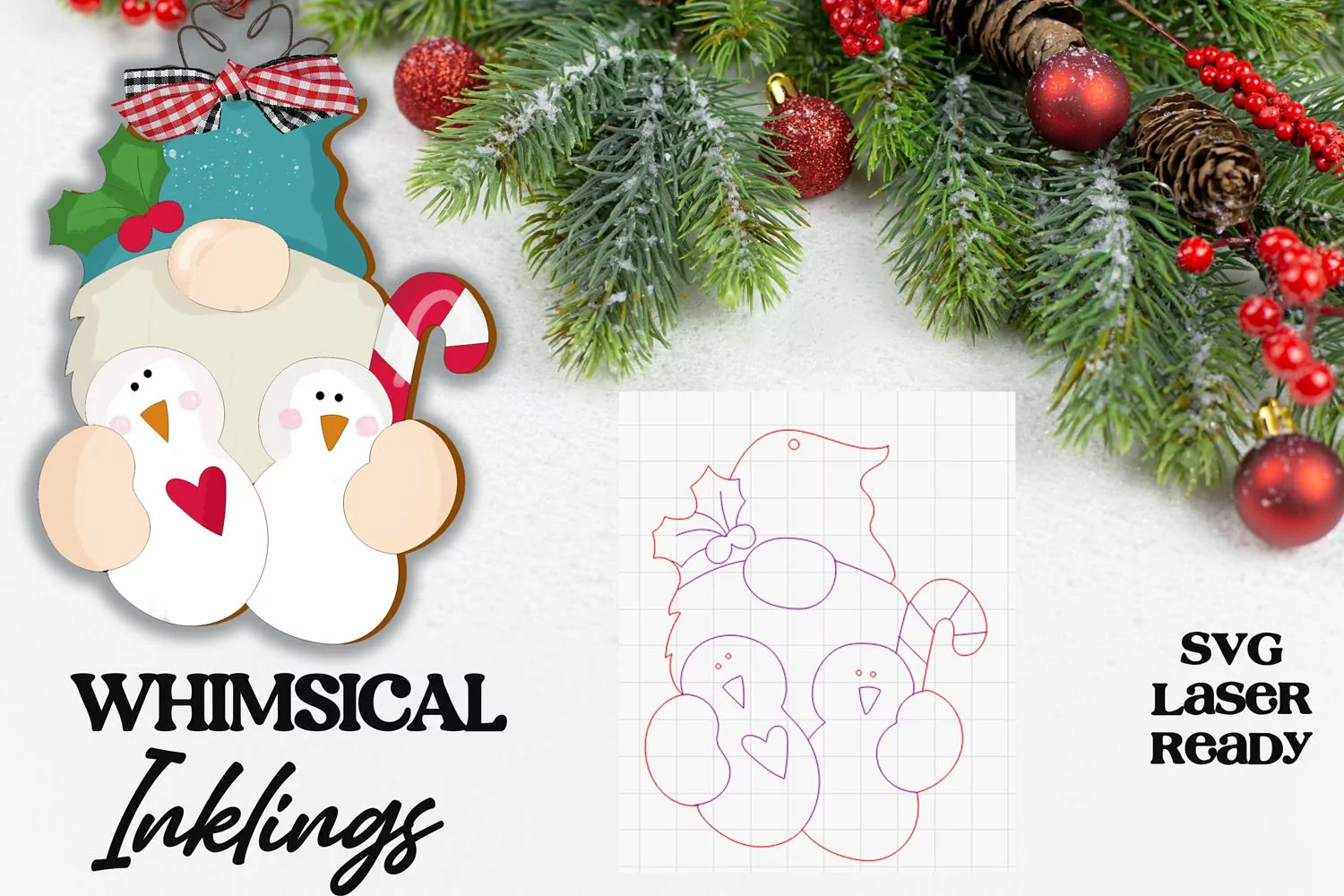 Similar Design Products to Snowman Gnome Ornament SVG For Laser Cutting