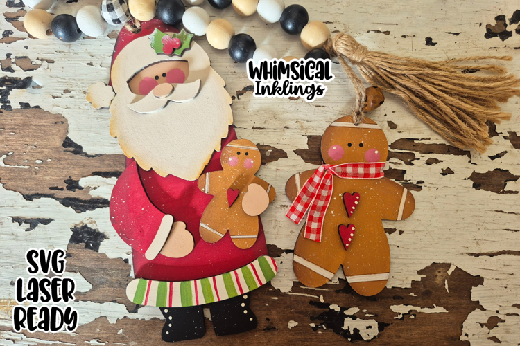 Get this whimsical gingerbread Santa ornament as a laser ready SVG. 2 versions included. One with score lines and a solid SVG. No instructions are included.