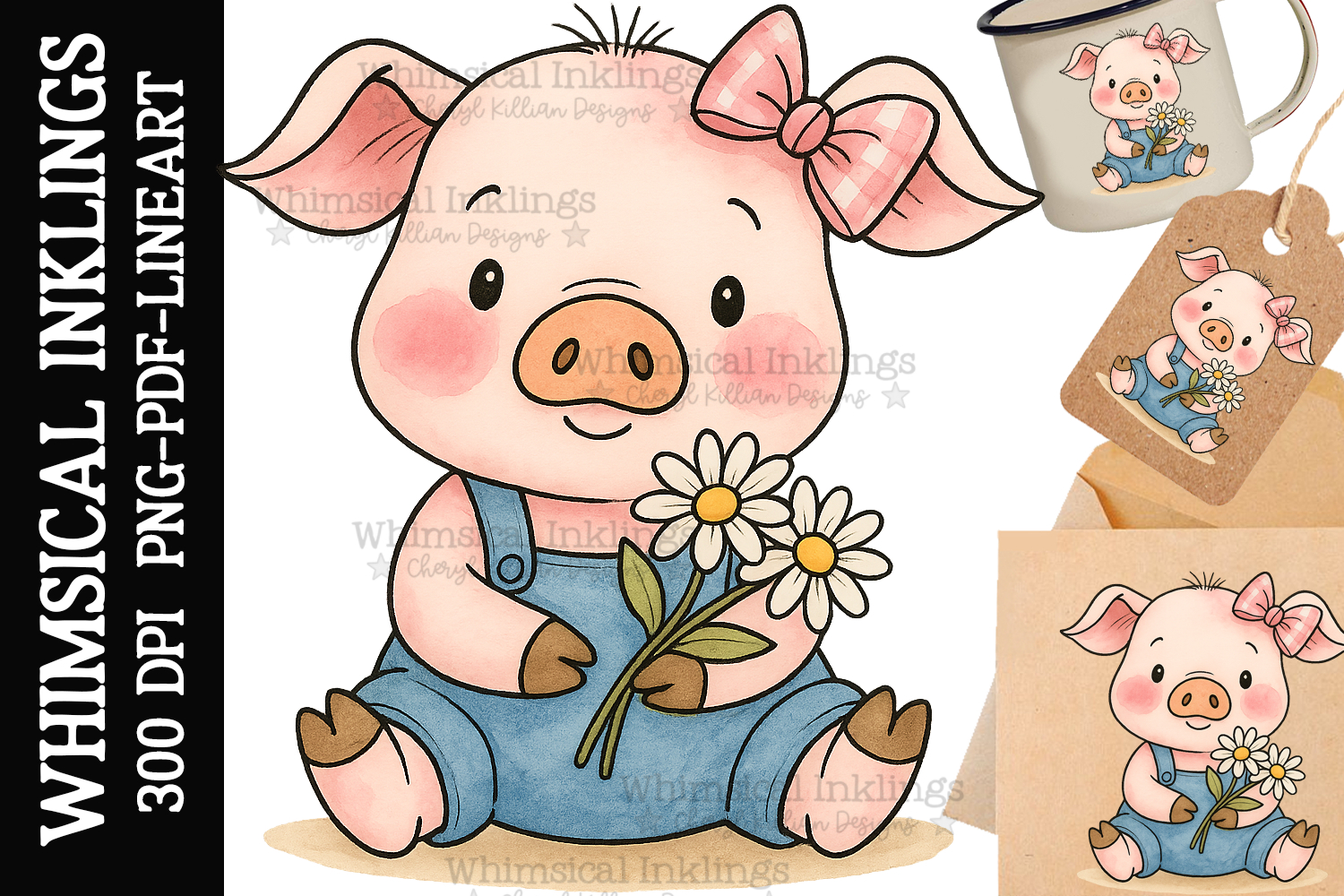 Daisy Pig Sublimation Clipart