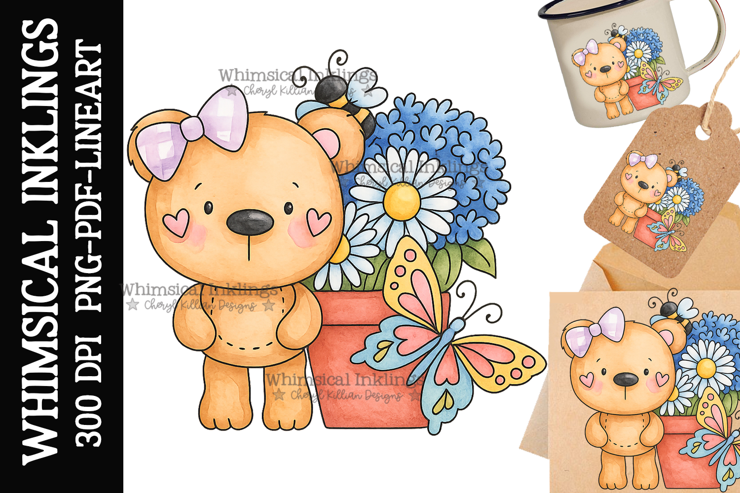 Butterfly Bear Sublimation Clipart