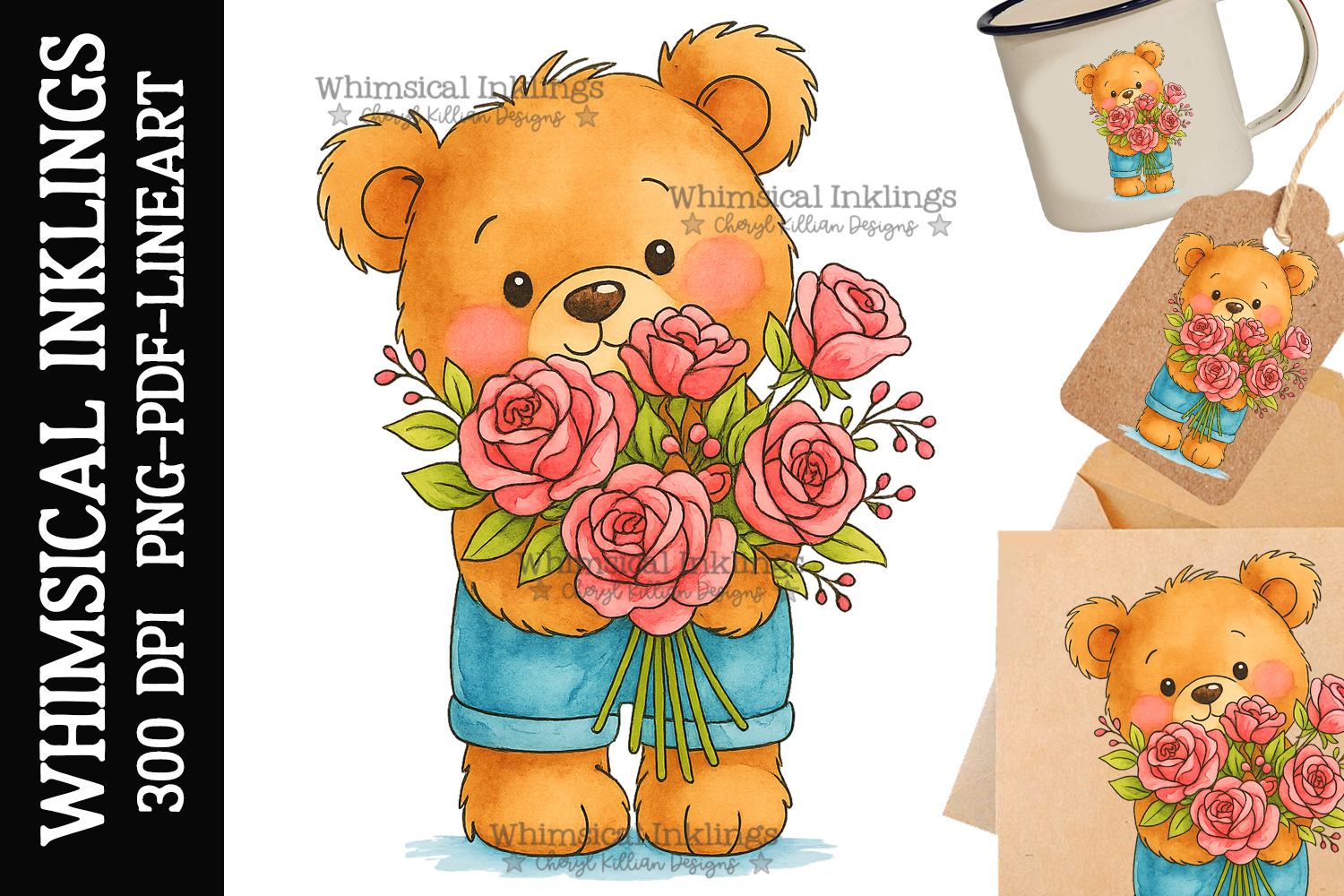 Roses Teddy Sublimation Clipart example image 1