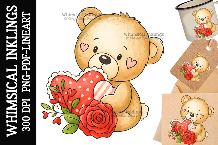 Sweet Valentines Day Bear Sublimation Clipart| DTF Clipart example image 1
