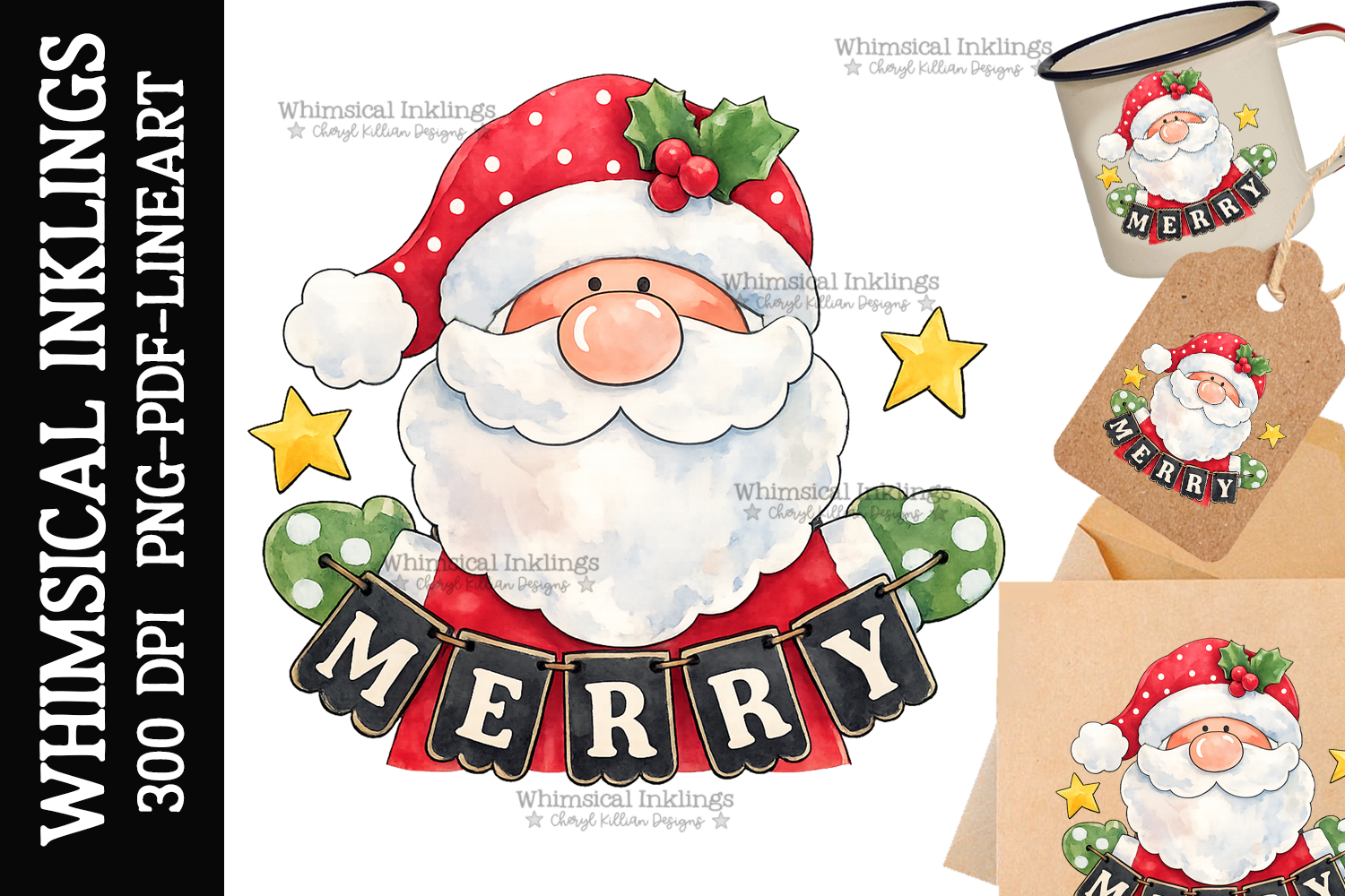 Merry Santa Sublimation Clipart| DTF Clipart
