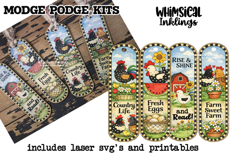 Silly Chickens Bookmarks Modge Podge SVG's and Printables