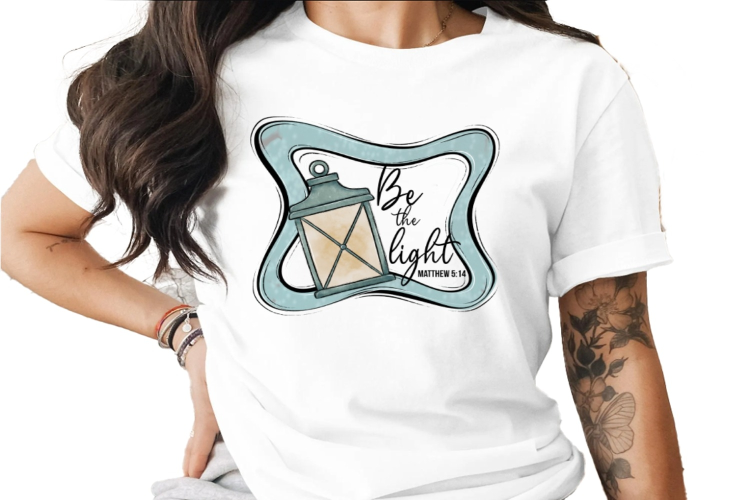 This digital design features a charming lantern illustration paired with the inspiring message "Be the Light," referencing Matthew 5 14. Perfect for adding a touch of faith and inspiration to your creative projects.