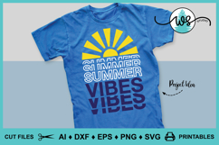 ★ Stacked text digital SVG logo featuring a large beautiful sun ray and stacked text with the summer saying "Summer Vibes".