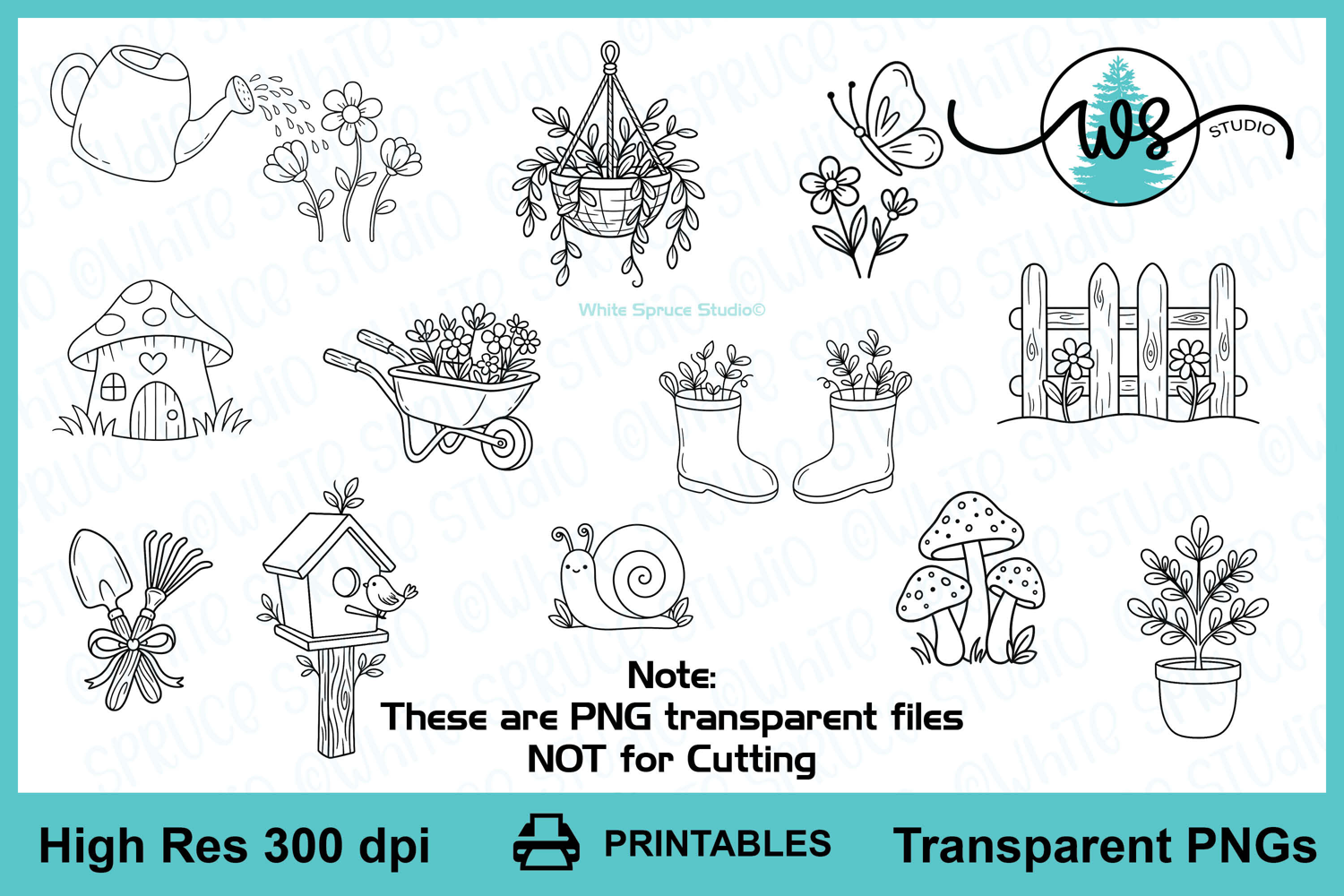 Digital Stamp, Spring Element Designs Line Art PNG example image 1