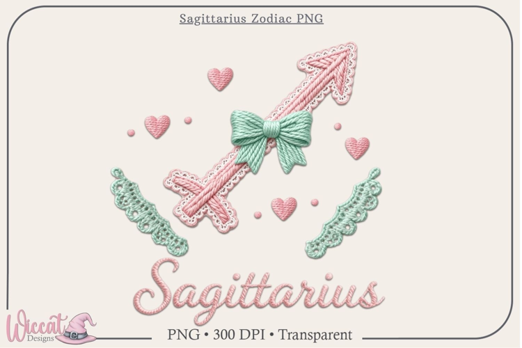 Sagittarius zodiac PNG digital download, cozy faux knit astrology illustration in pastel yarn style, transparent background PNG, 300 DPI high resolution, perfect for t shirts, sweatshirts, sublimation, print on demand, stickers, planners, nursery decor and astrology themed designs,