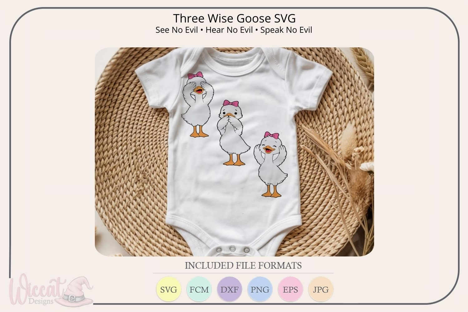 This digital design bundle features three adorable goose characters in the classic “three wise” poses. Perfect for Cricut, Silhouette, laser cutting, sublimation, print-then-cut, stickers, apparel, and other digital craft projects.