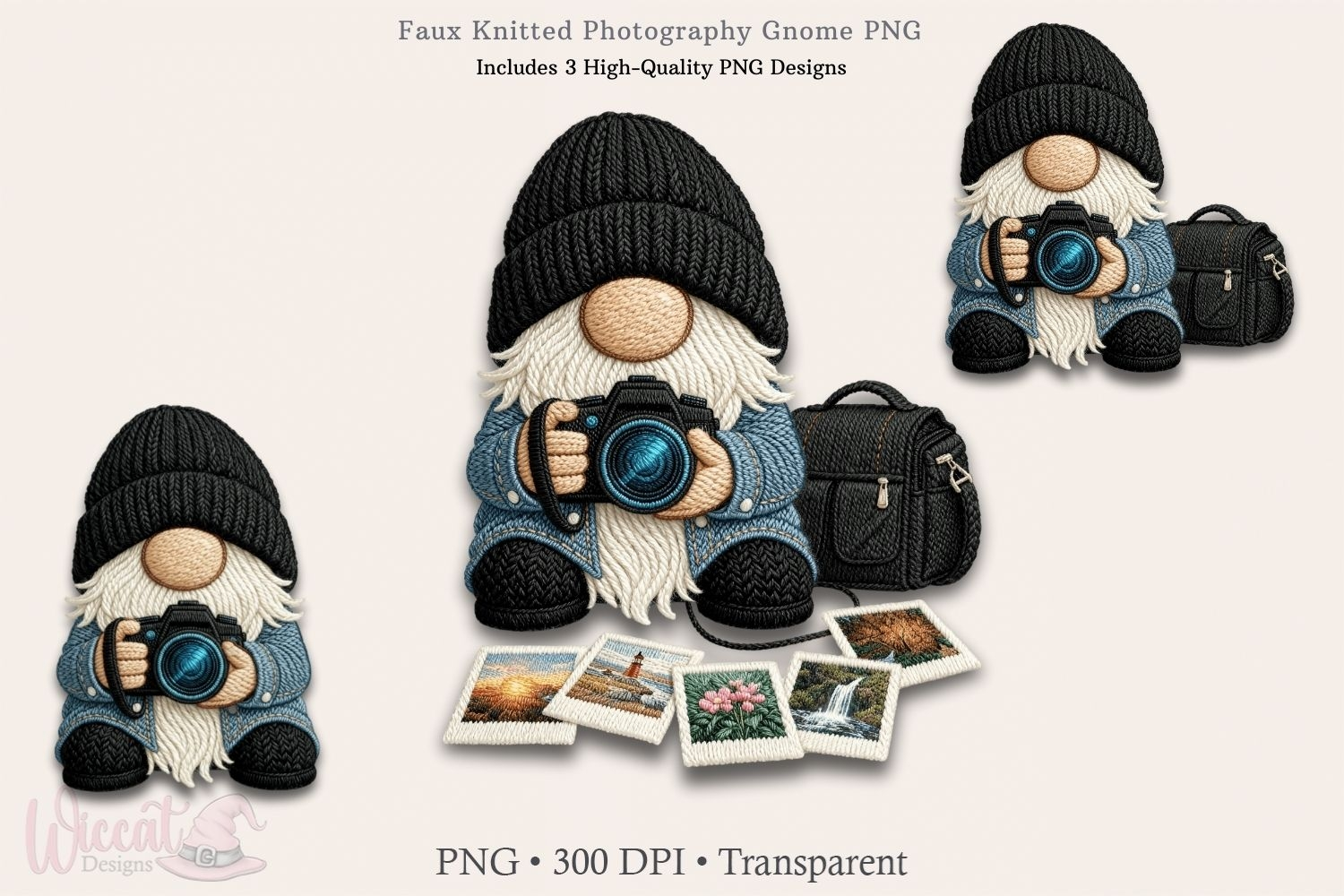 📸 Faux Knitted Photography Gnome PNG – 3 File Digital Download