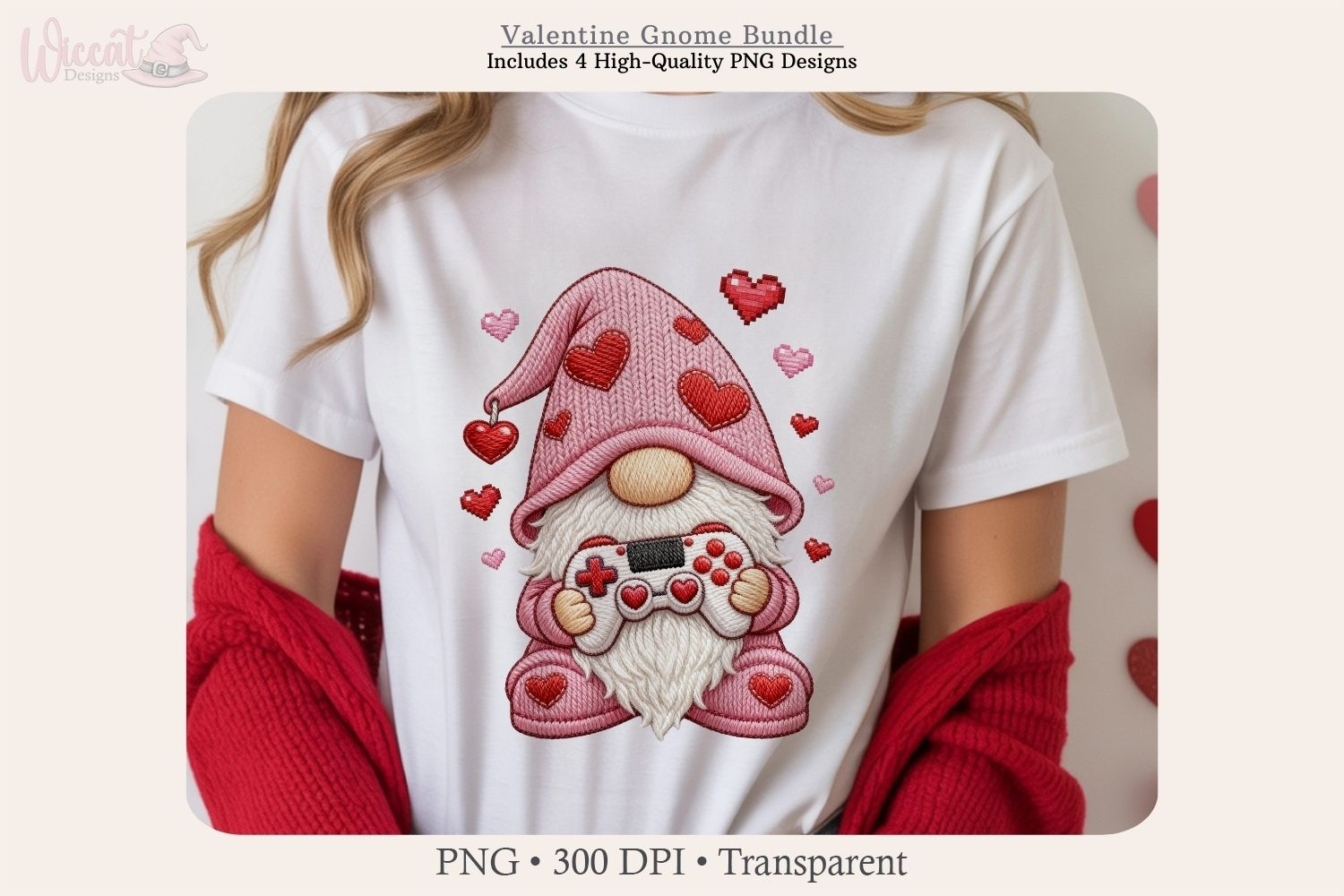 Valentine Gnome Bundle PNG – Cute Faux Knit Love & Gamer Gnomes
