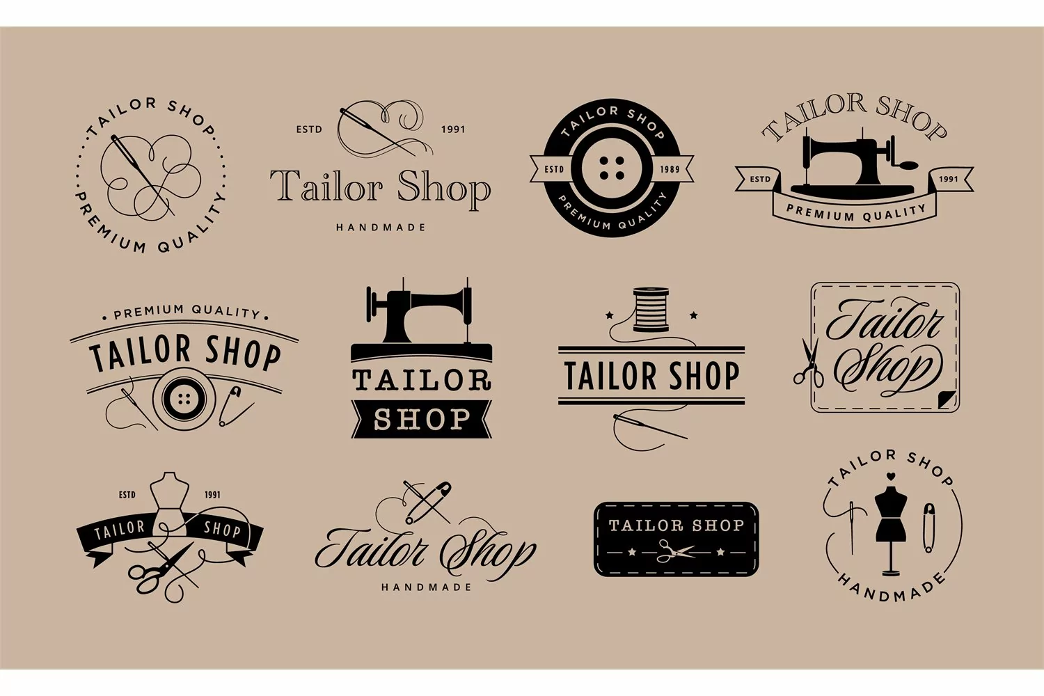 Tailor shop emblem. Elegant dressmaker label, atelier tag wi