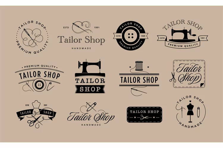 Similar Design Products to Tailor shop emblem. Elegant dressmaker label, atelier tag wi