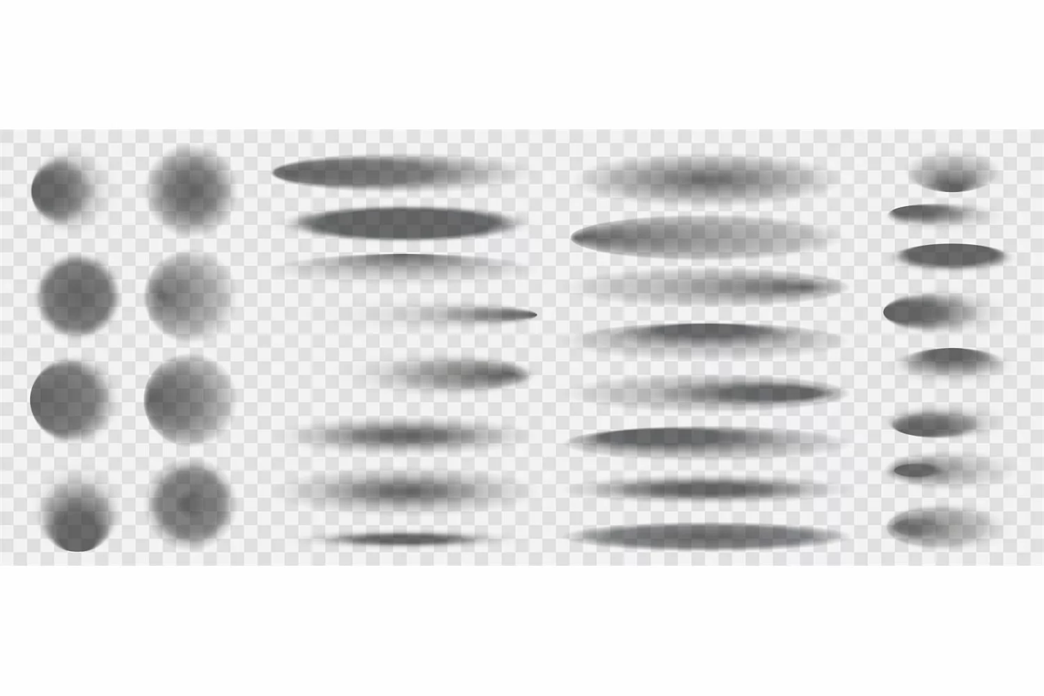 Realistic round shadows. Square transparent surface shades, floor oval and circle blurry edges shadows vector isolated templates set. Template shadow soft, realistic shape shade illustration