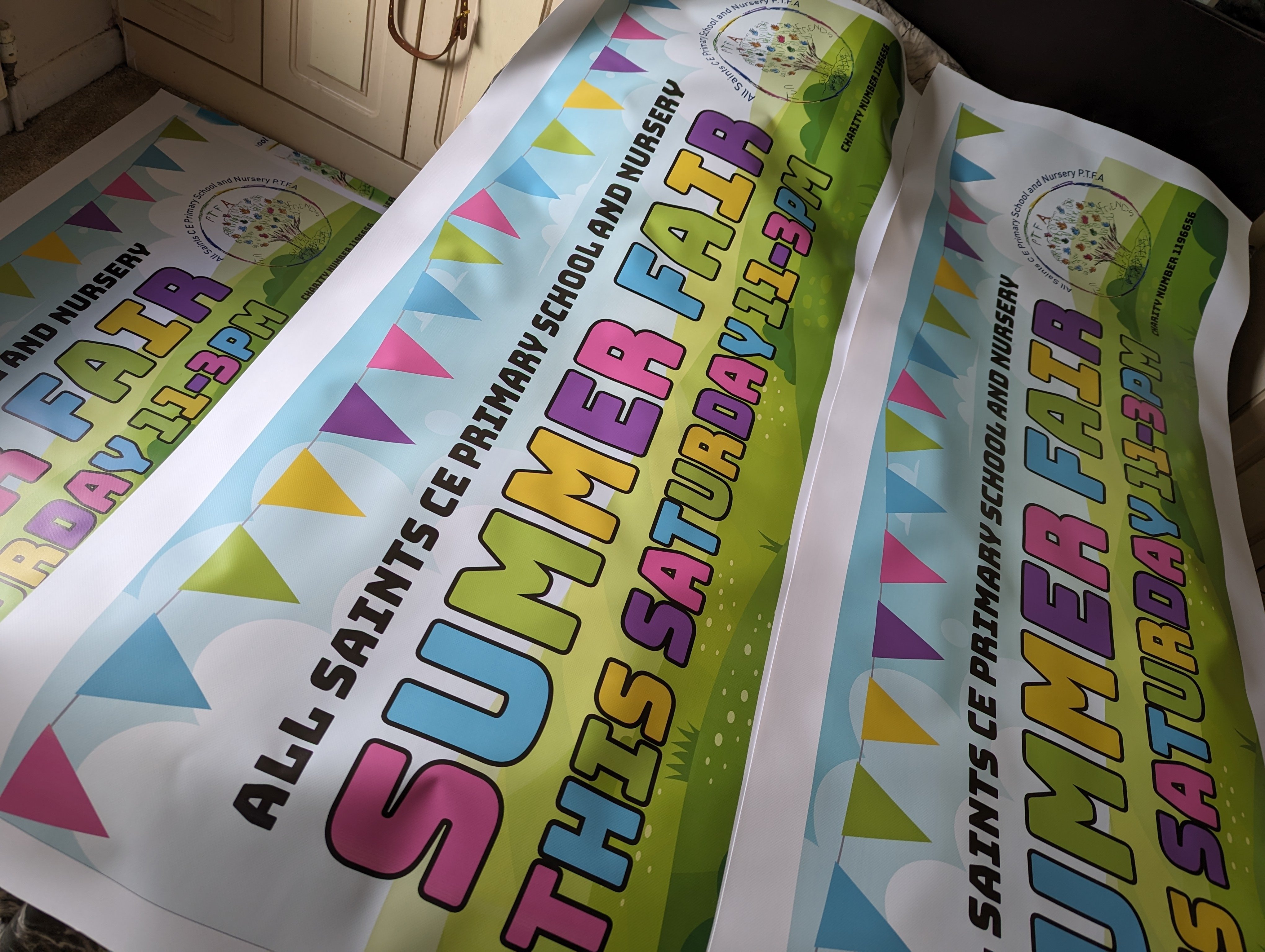 Perfect background for summer fair banners!. Christmassy and Fireworks backgrounds would be fab too if it's something you can do. Thank you. (photo is them drying before hemming and adding eyelets)