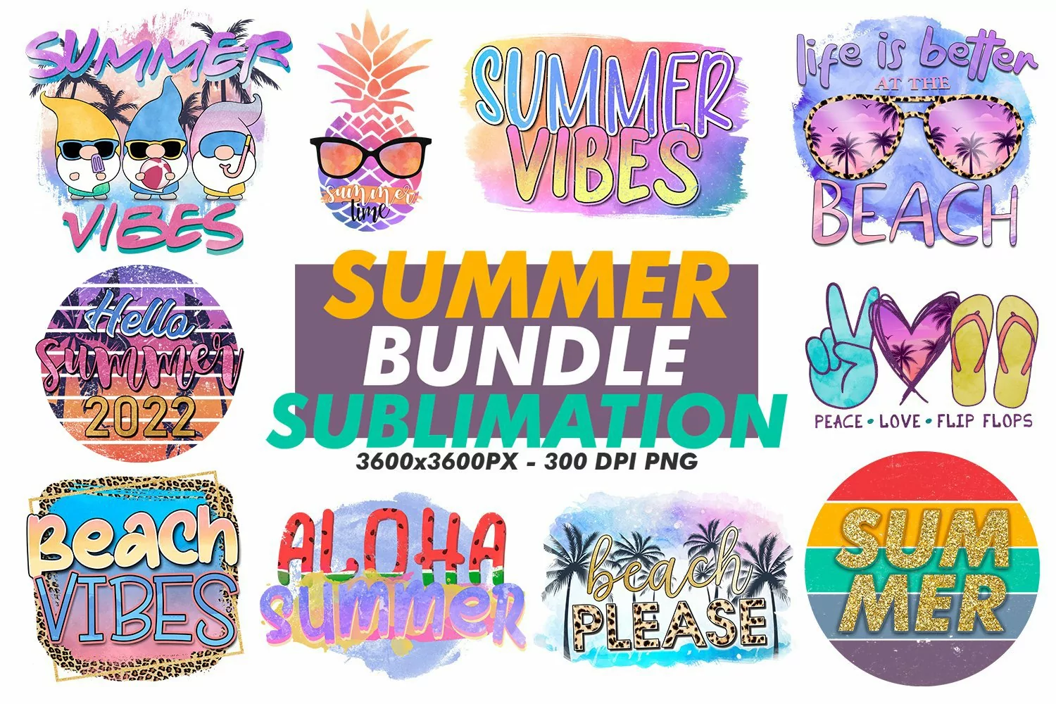 After buying this Summer Sublimation Bundle, you will receive a ZIP file which you need to extract it then you will find 10 Different PNGs