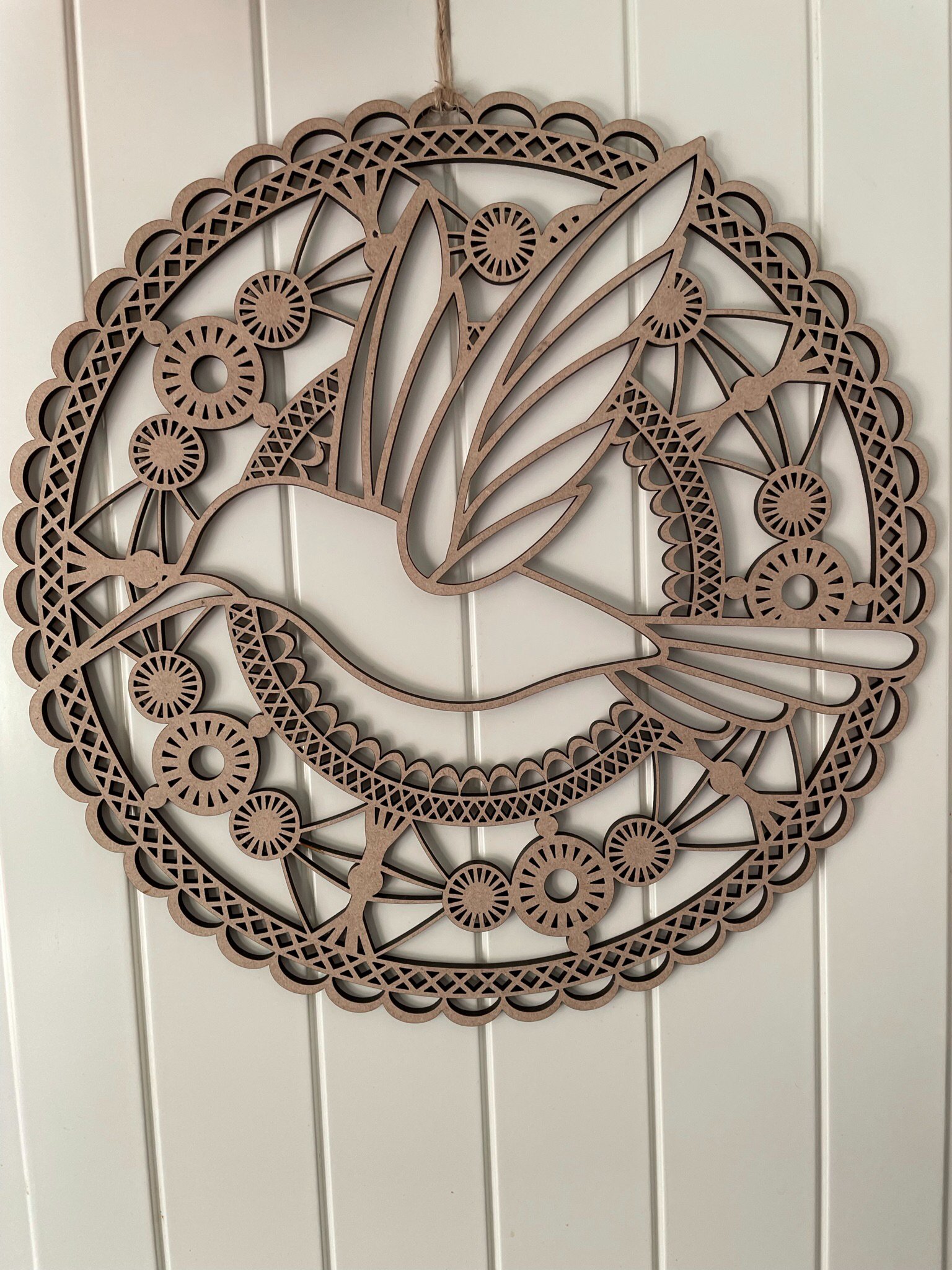 Papercut Animal Mandala Wood Hummingbird Laser Paper Cutting Laser Cut Wood Sign Glowforge